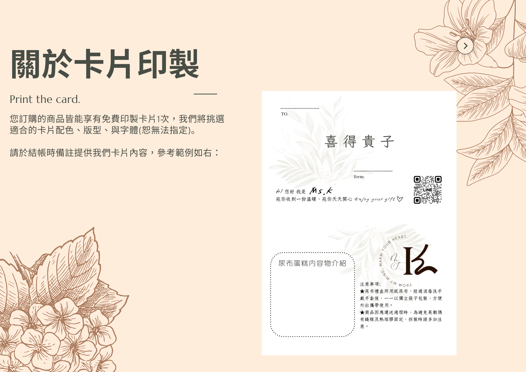 🌼尿布包裝時以獨立包裝以保持乾淨衛生;蛋糕內容物均嚴格細心挑選對寶寶的健康安全把關
